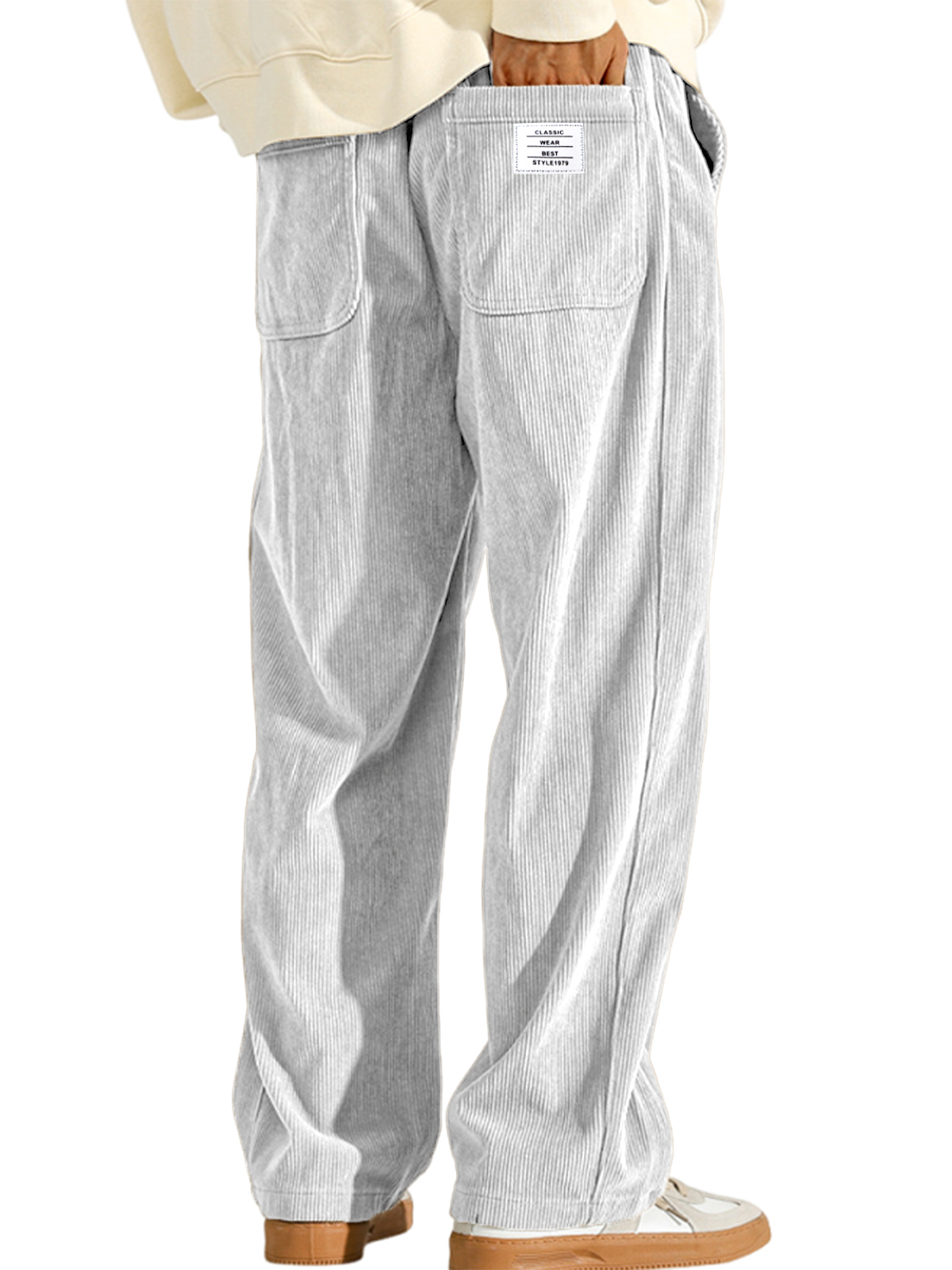 Men's Loose Fashion Corduroy Ribbed Fabric Embroidered Logo Drawstring Loose Elastic Waist Pocket Trousers
