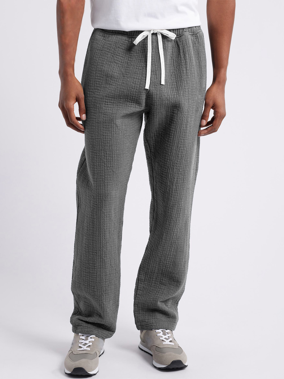 Men's Breathable Seersucker Trousers Casual Vacation Basic Drawstring Pants With Side Pockets