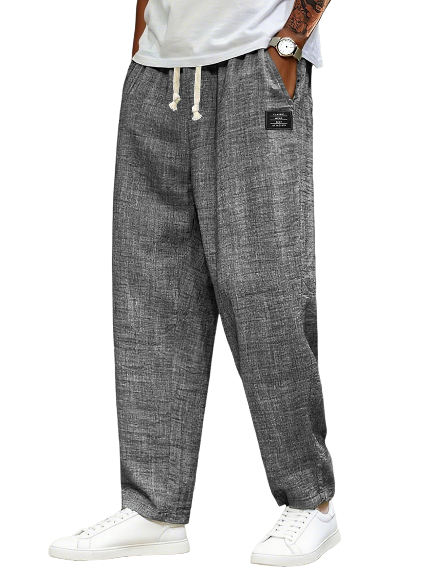 Men's Breathable Linen Casual Daily Pants with Embroidered Label