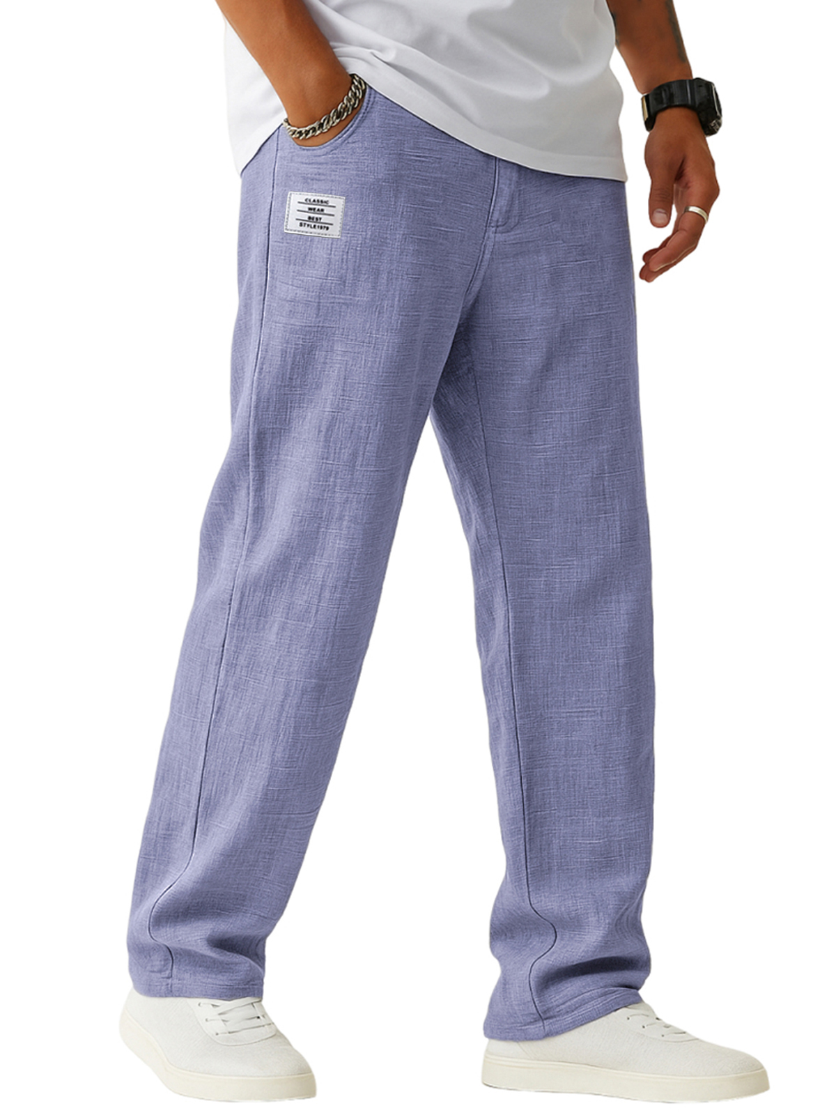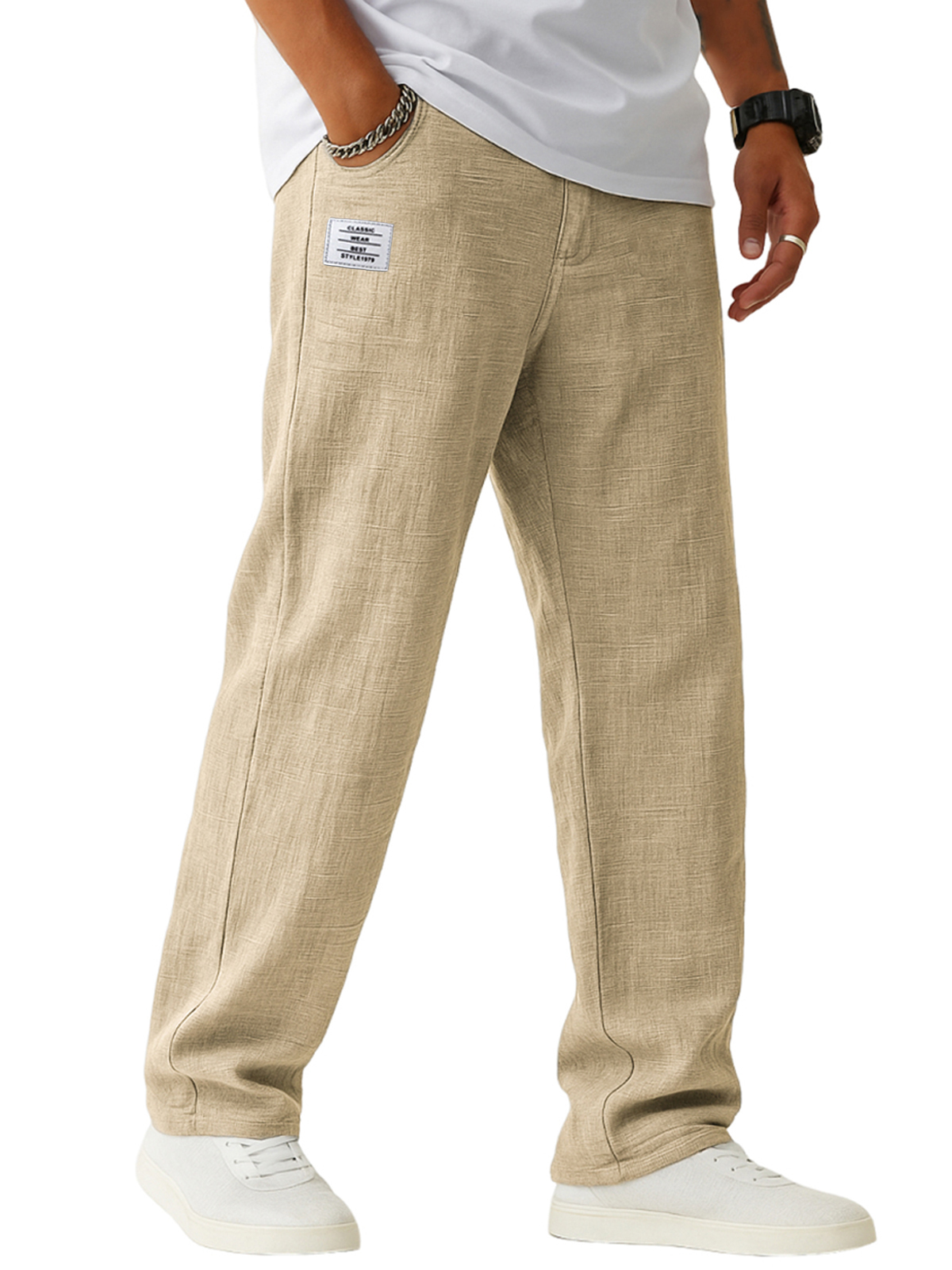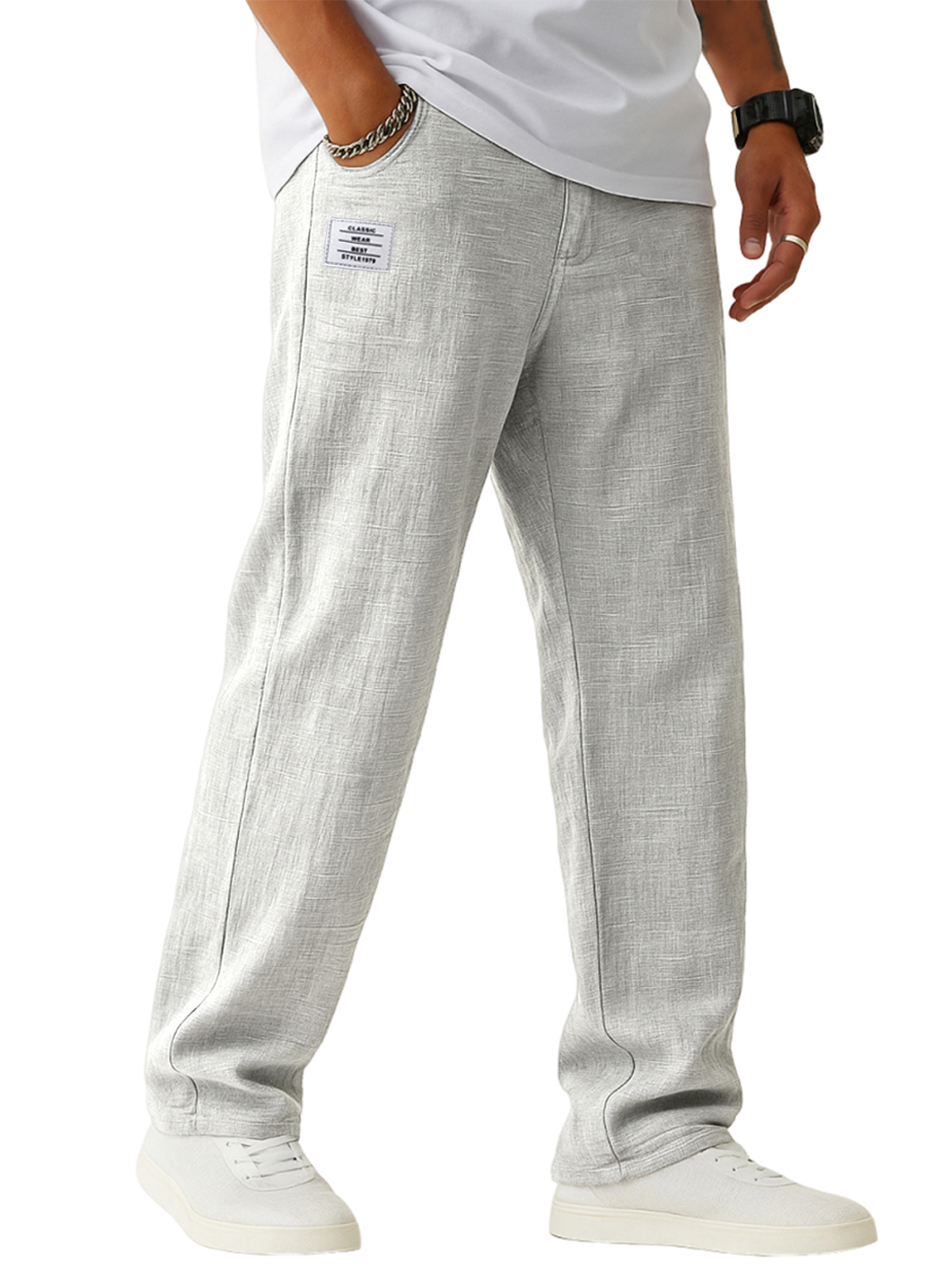 Men's Breathable Linen Casual Daily Pants with Embroidered Label