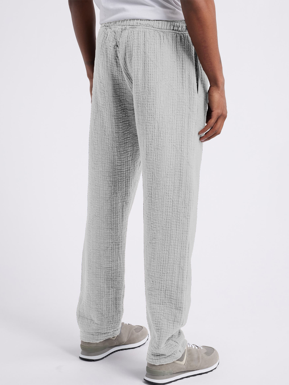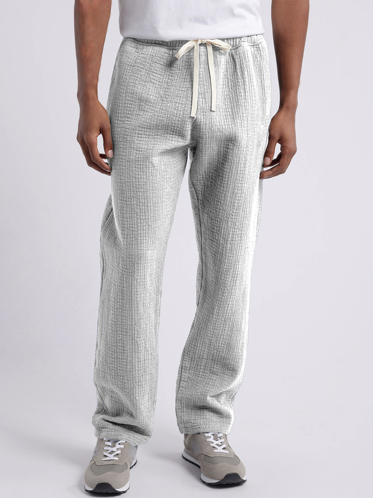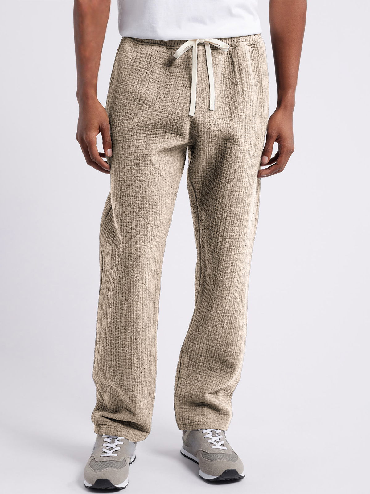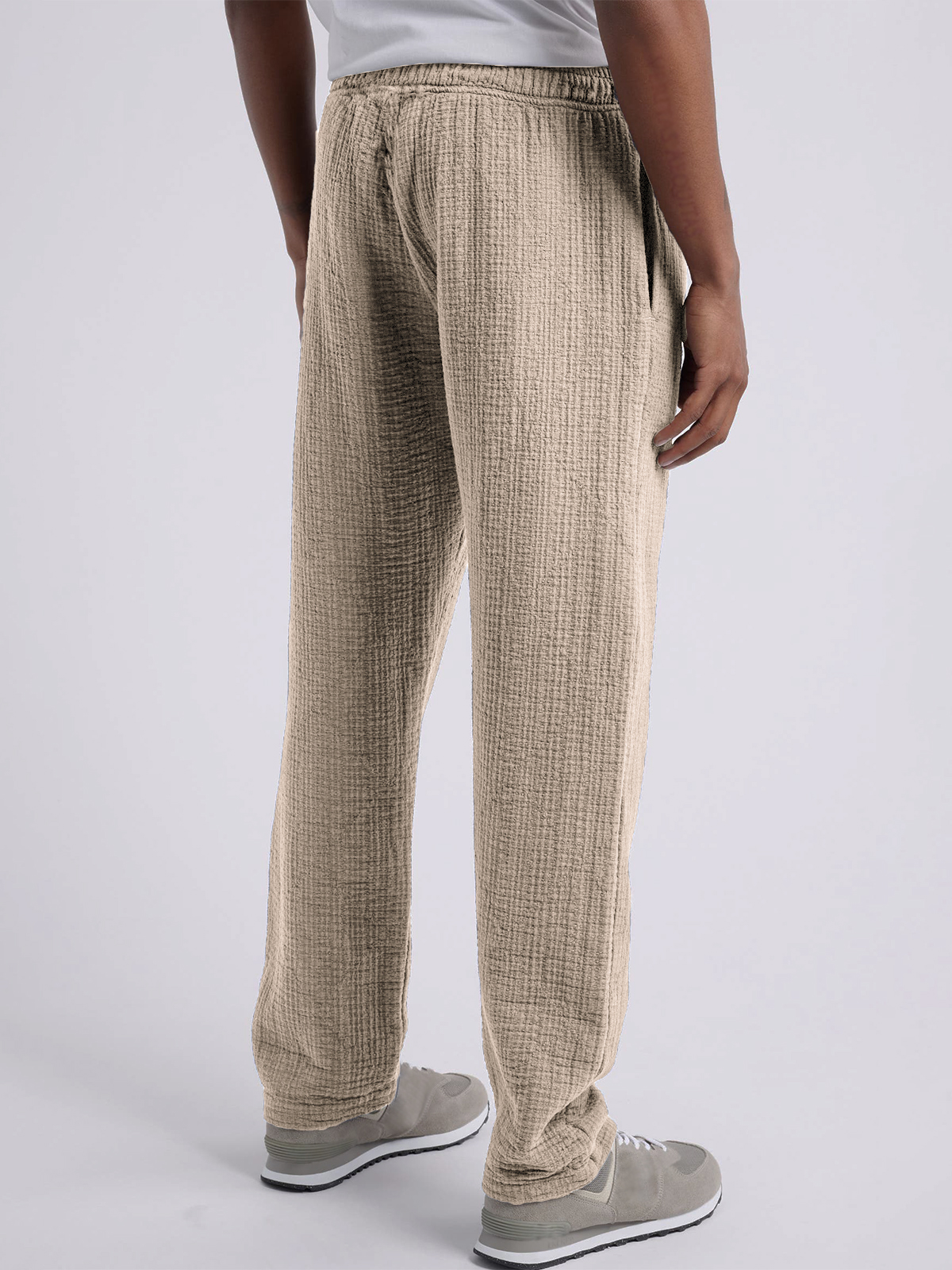 Men's Breathable Seersucker Trousers Casual Vacation Basic Drawstring Pants With Side Pockets