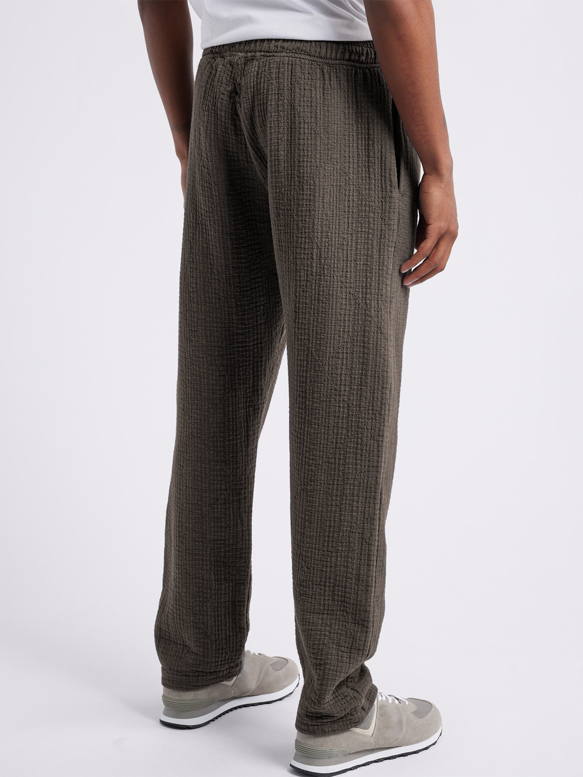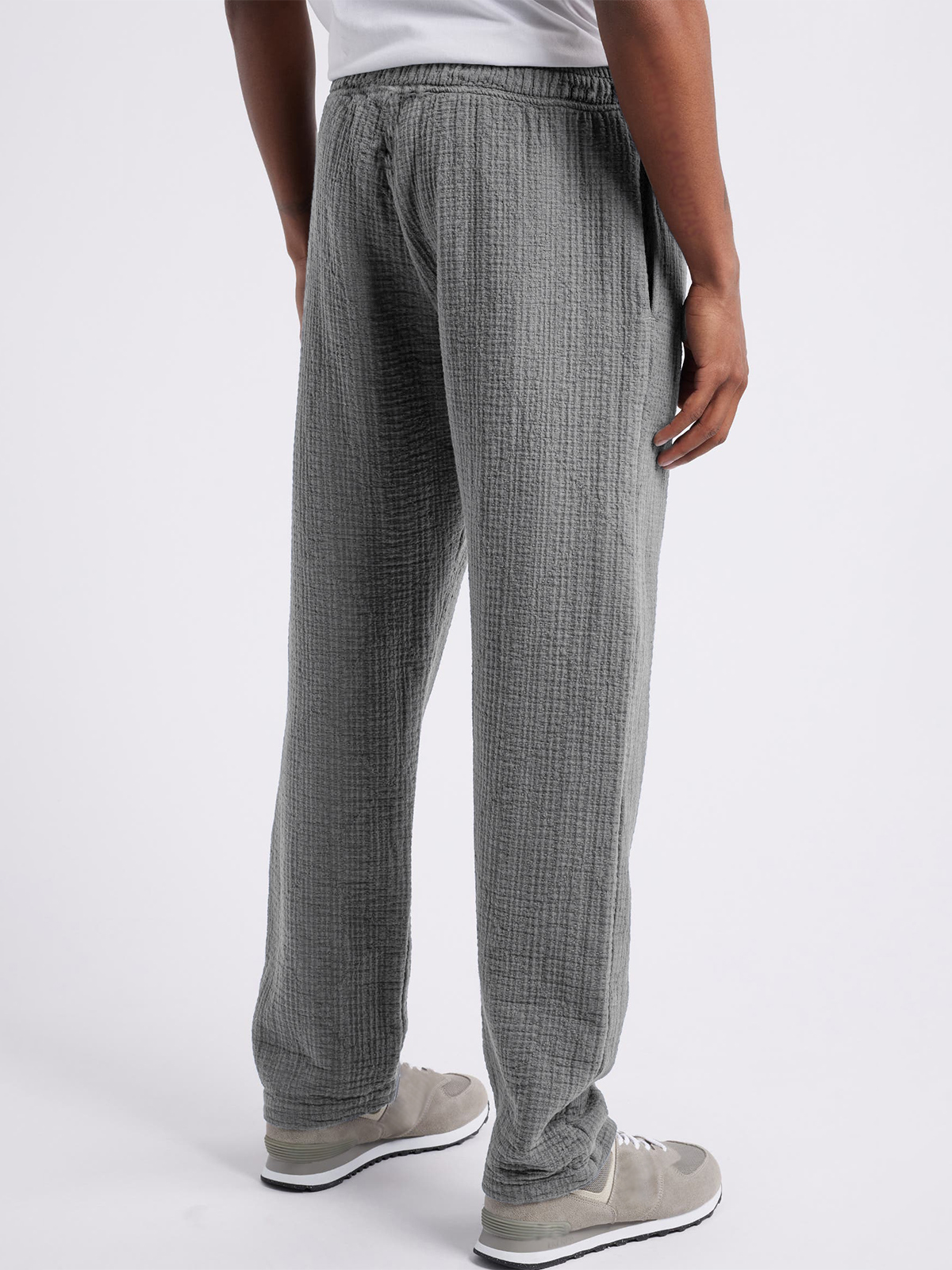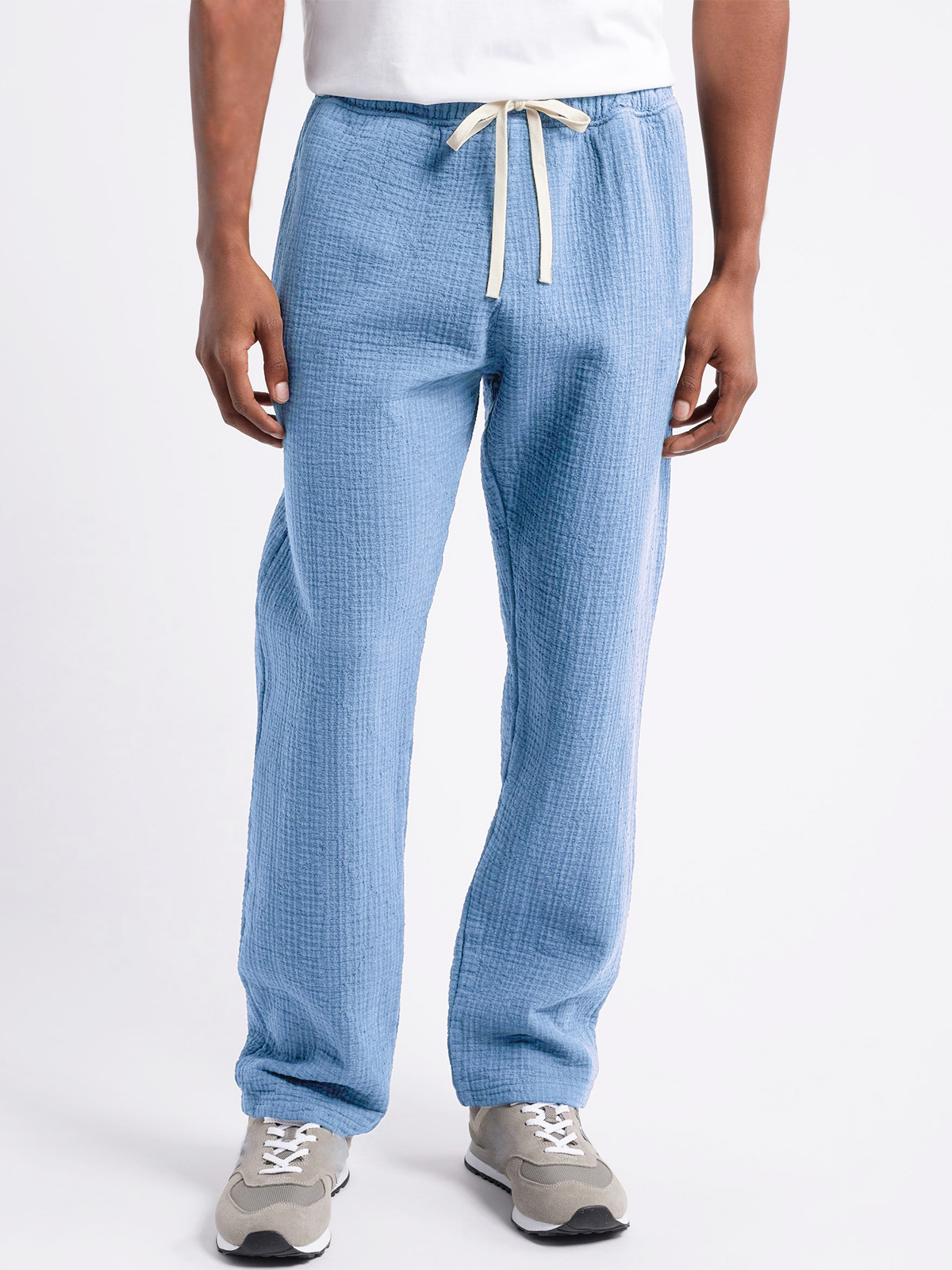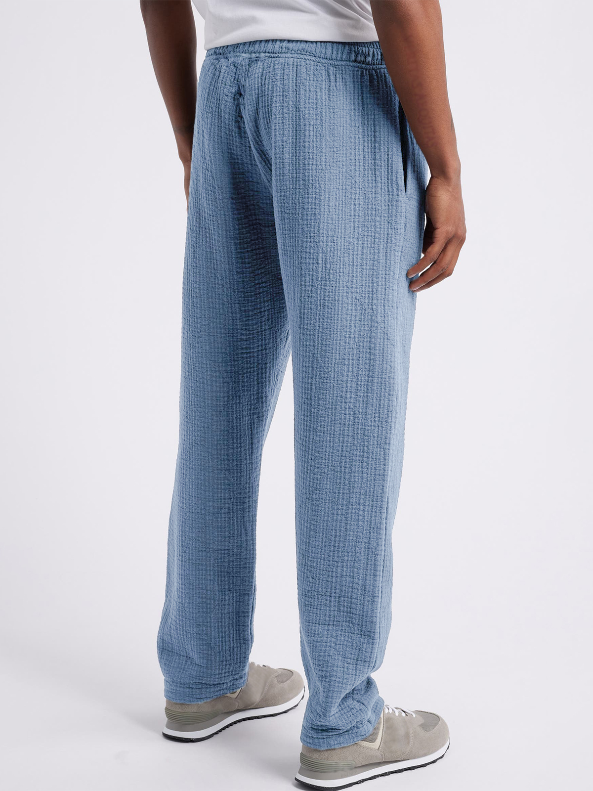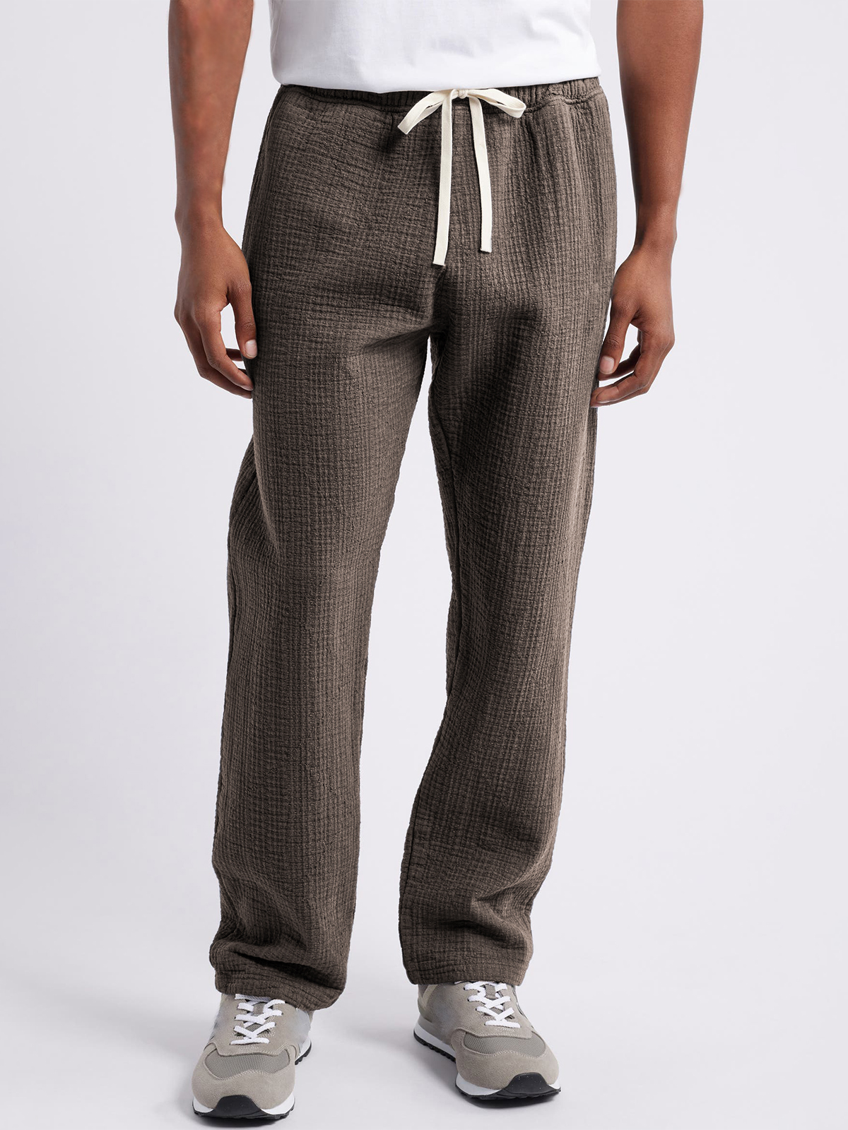 Men's Breathable Seersucker Trousers Casual Vacation Basic Drawstring Pants With Side Pockets