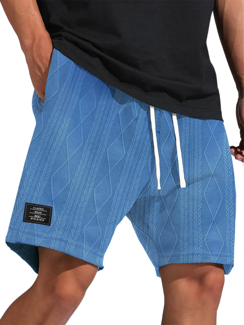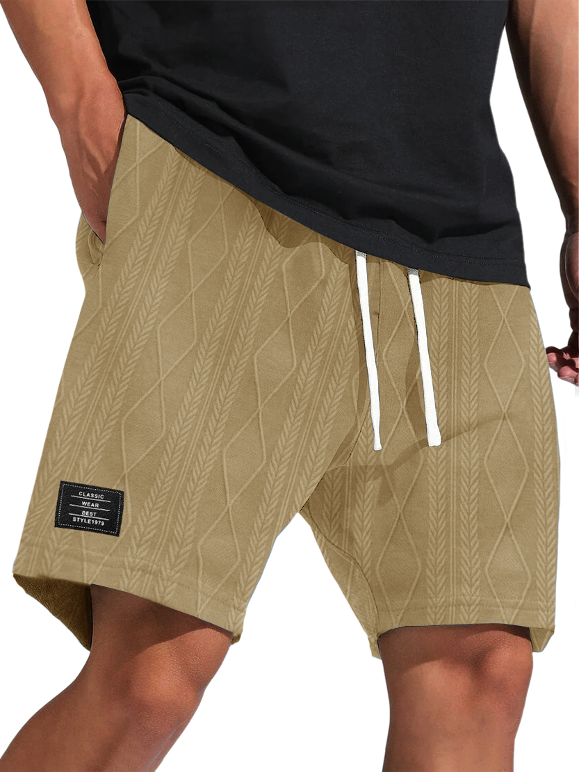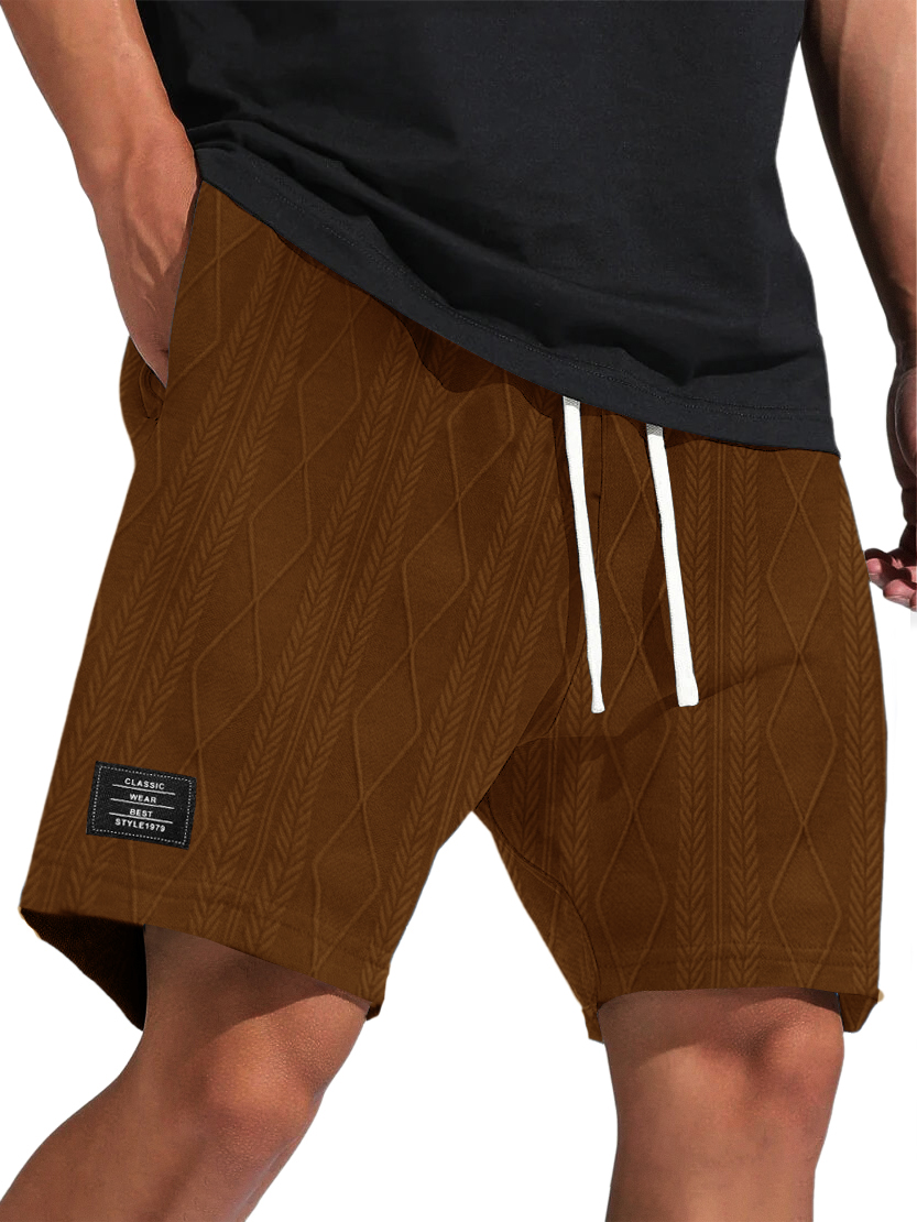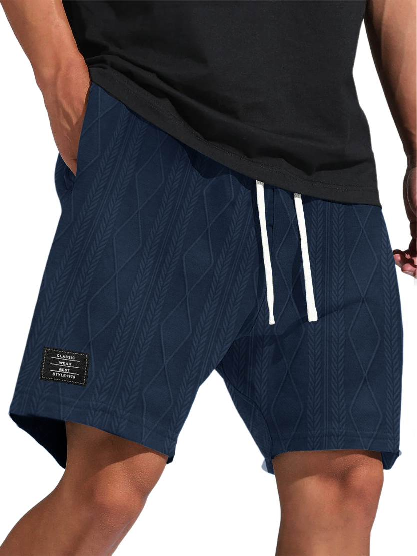 Men's Casual Daily Jacquard Texture Embroidered Logo Comfort Shorts