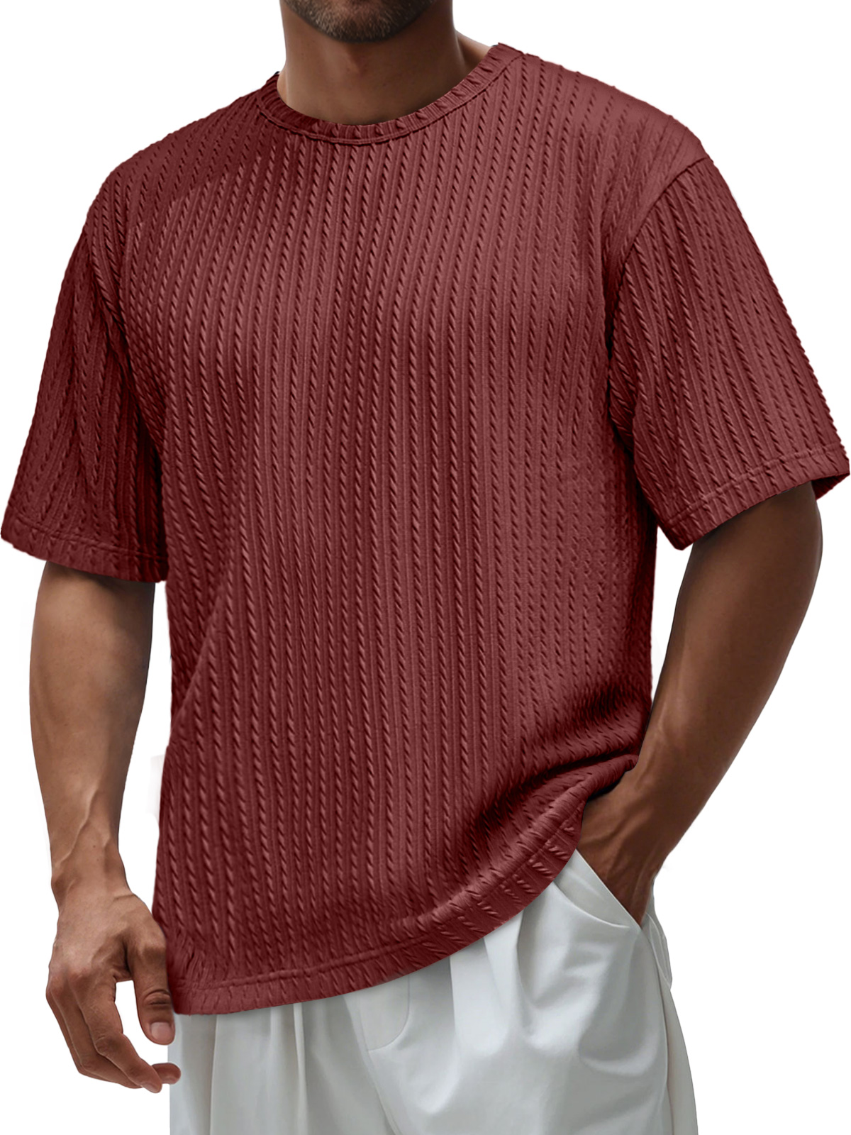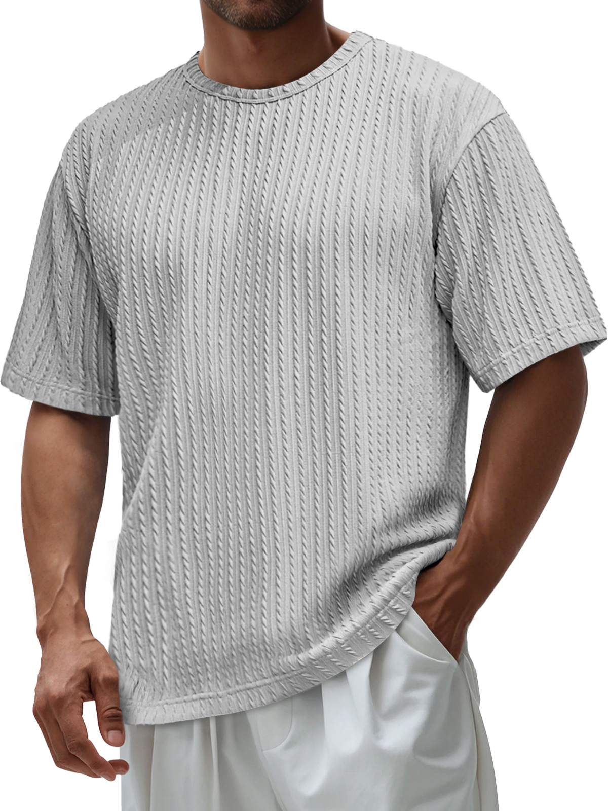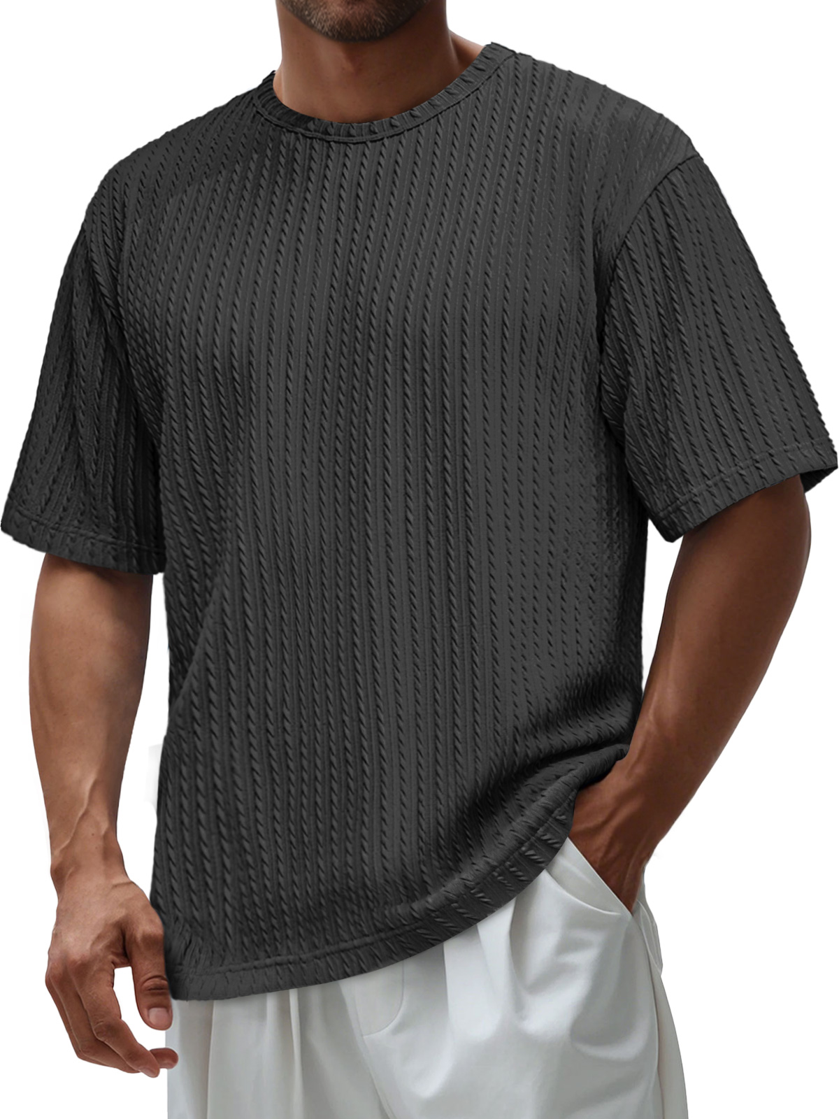 Men's Daily Round Neck Jacquard Texture Casual Solid Color Short-sleeved T-shirt