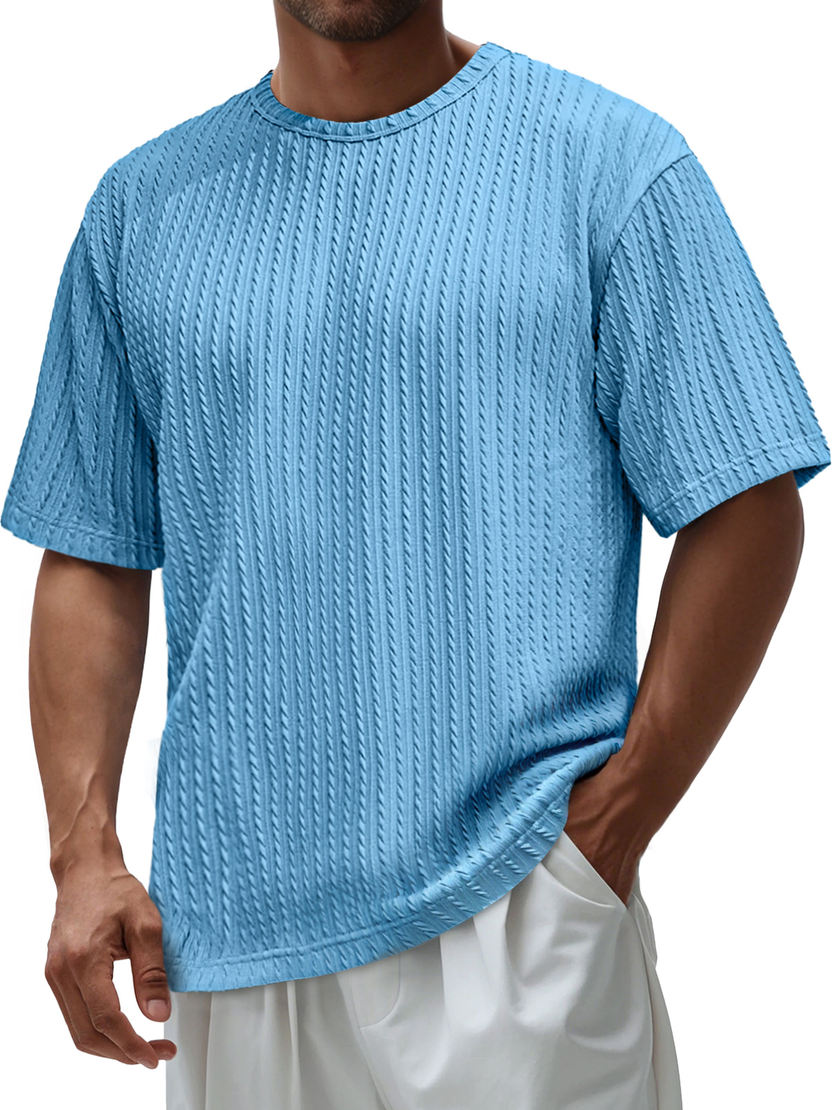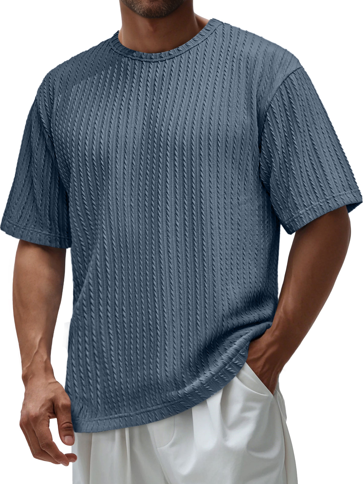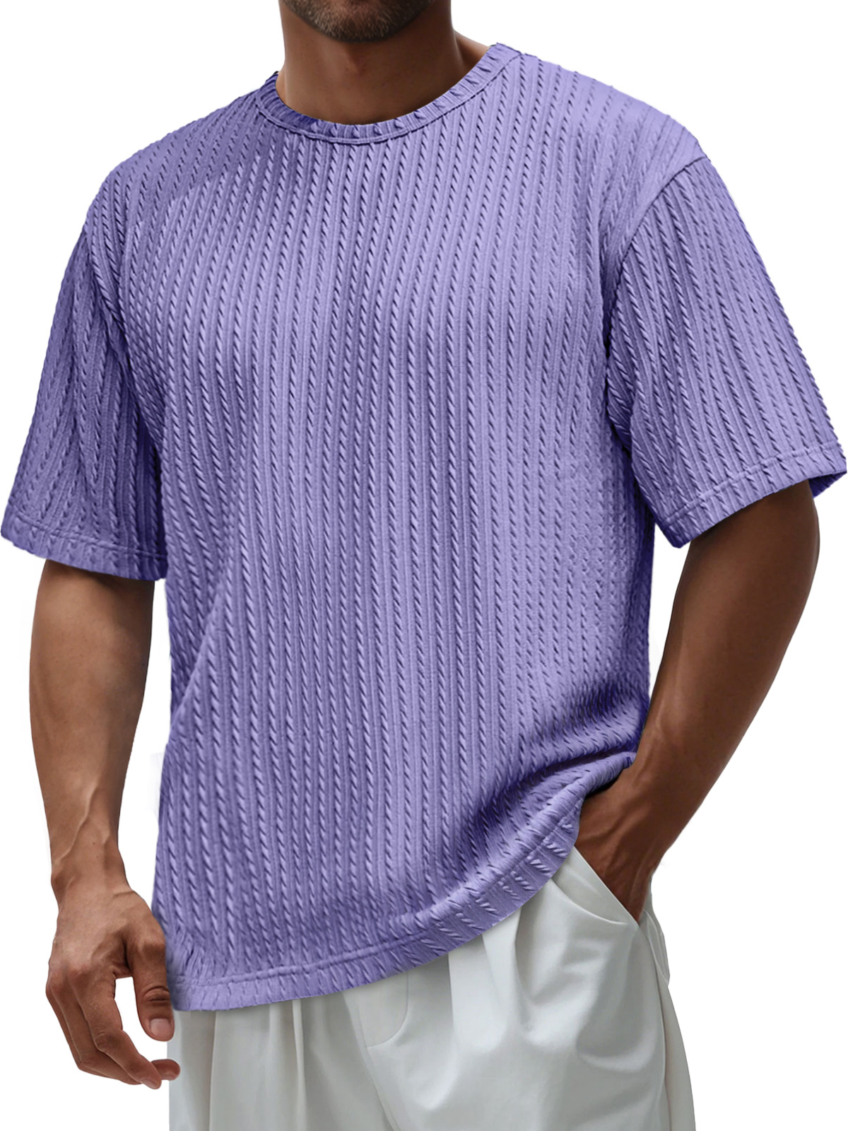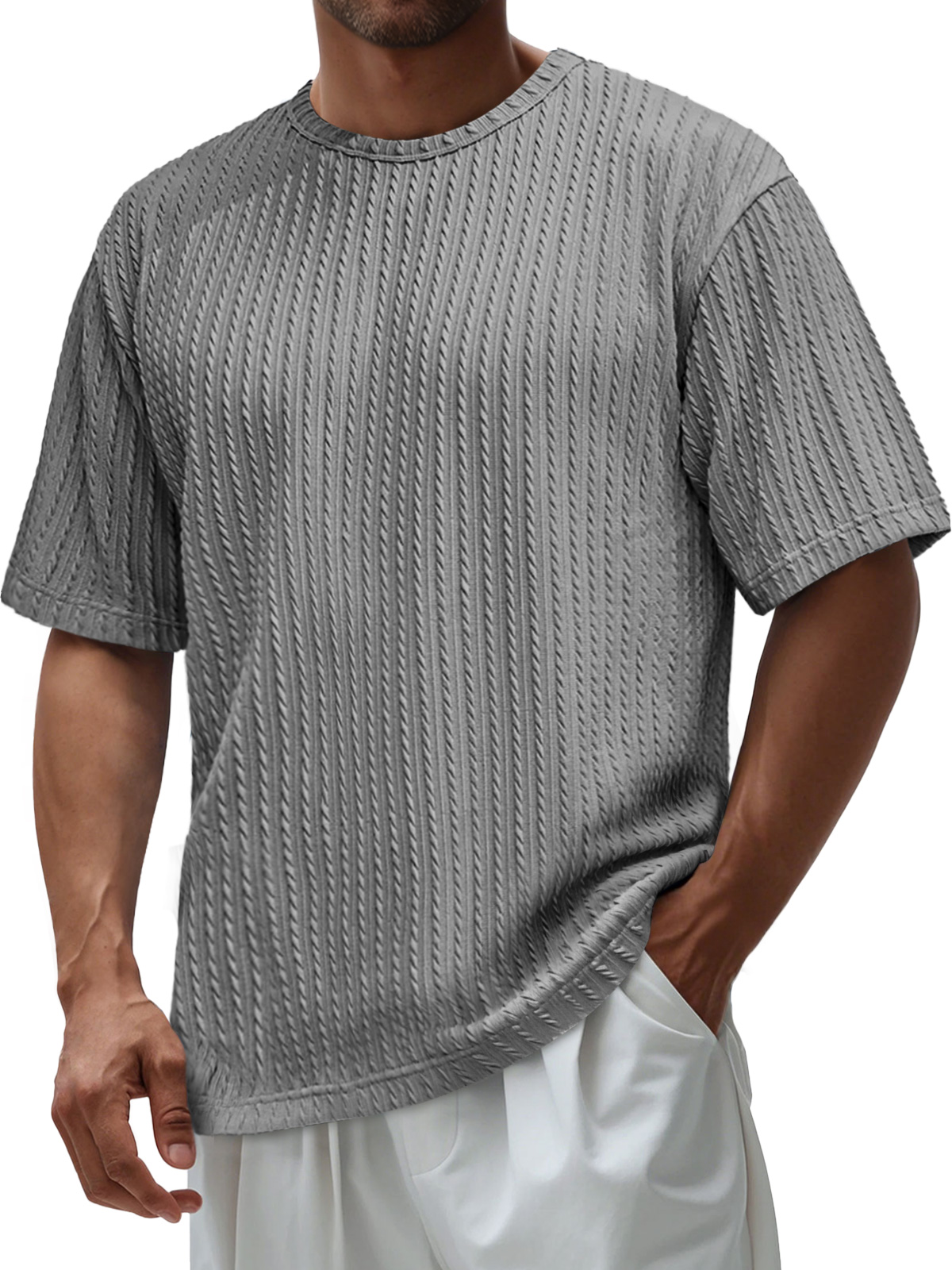 Men's Daily Round Neck Jacquard Texture Casual Solid Color Short-sleeved T-shirt