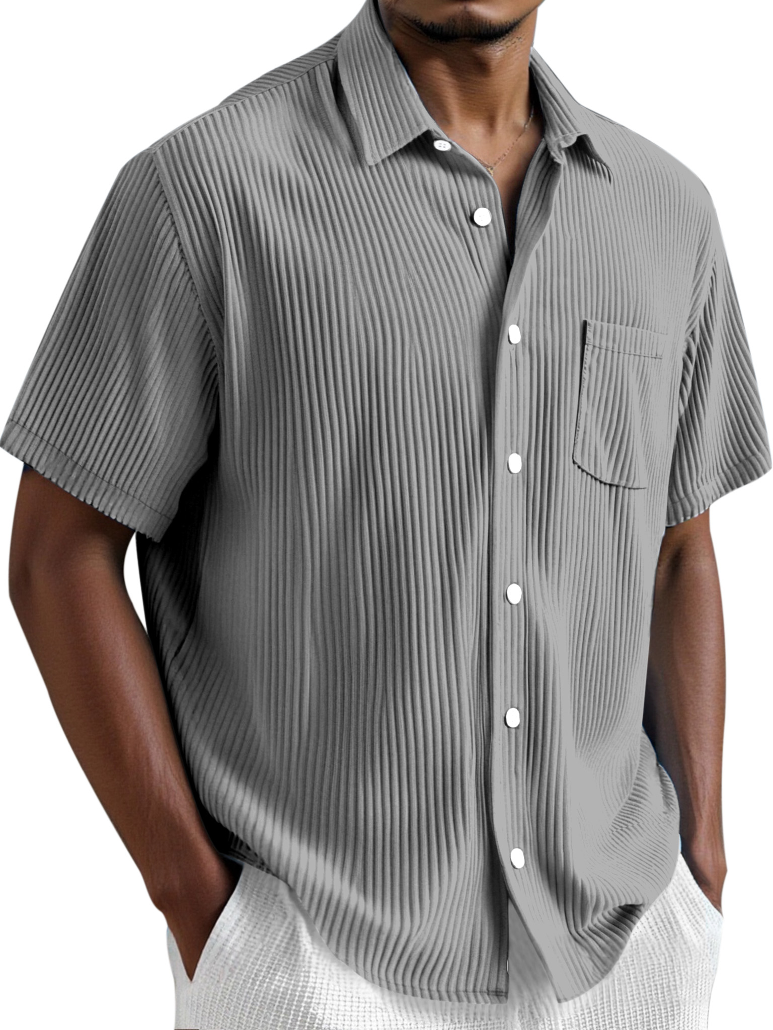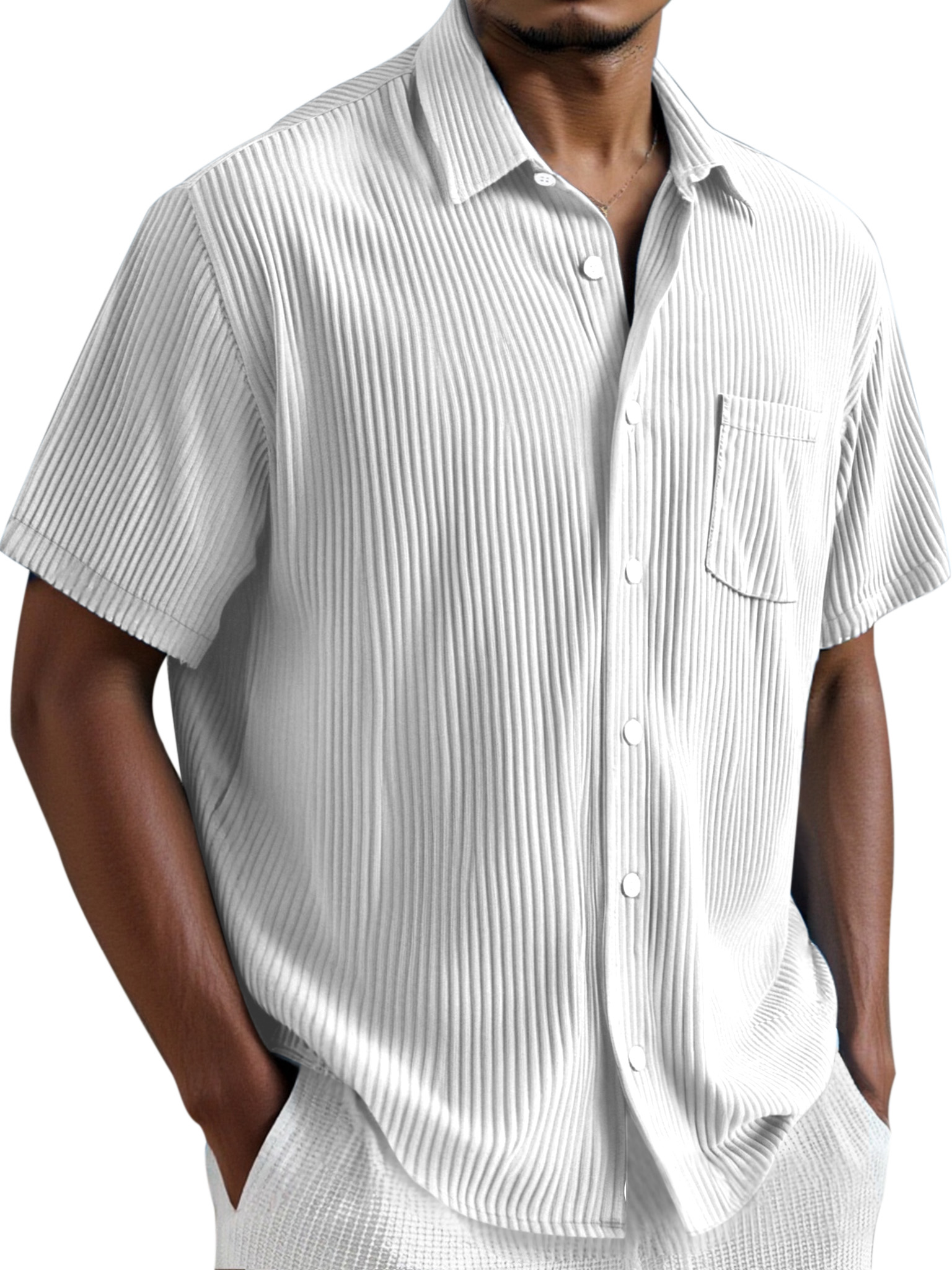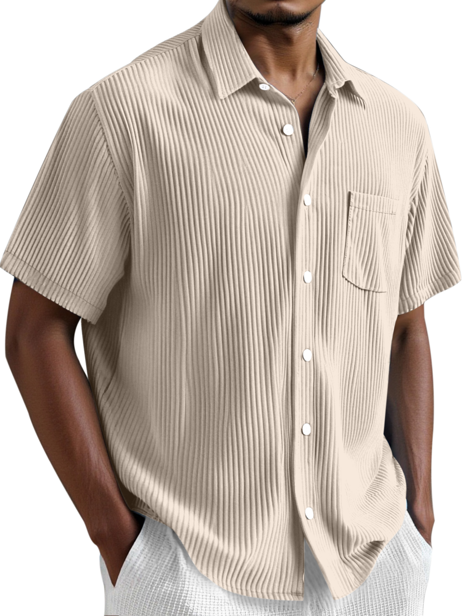 Men's Simple Solid Color Vertical Pit Short Sleeve Shirt