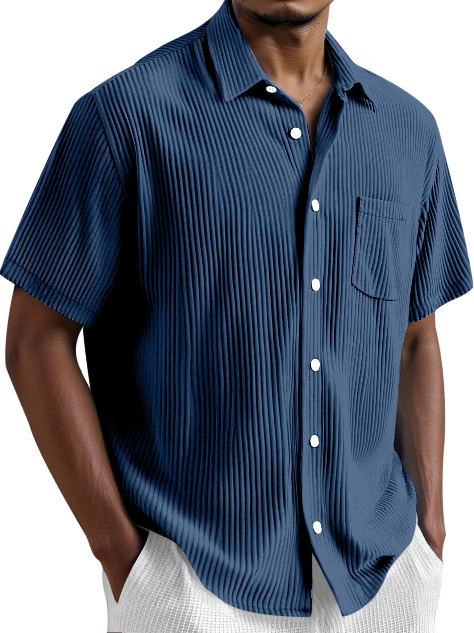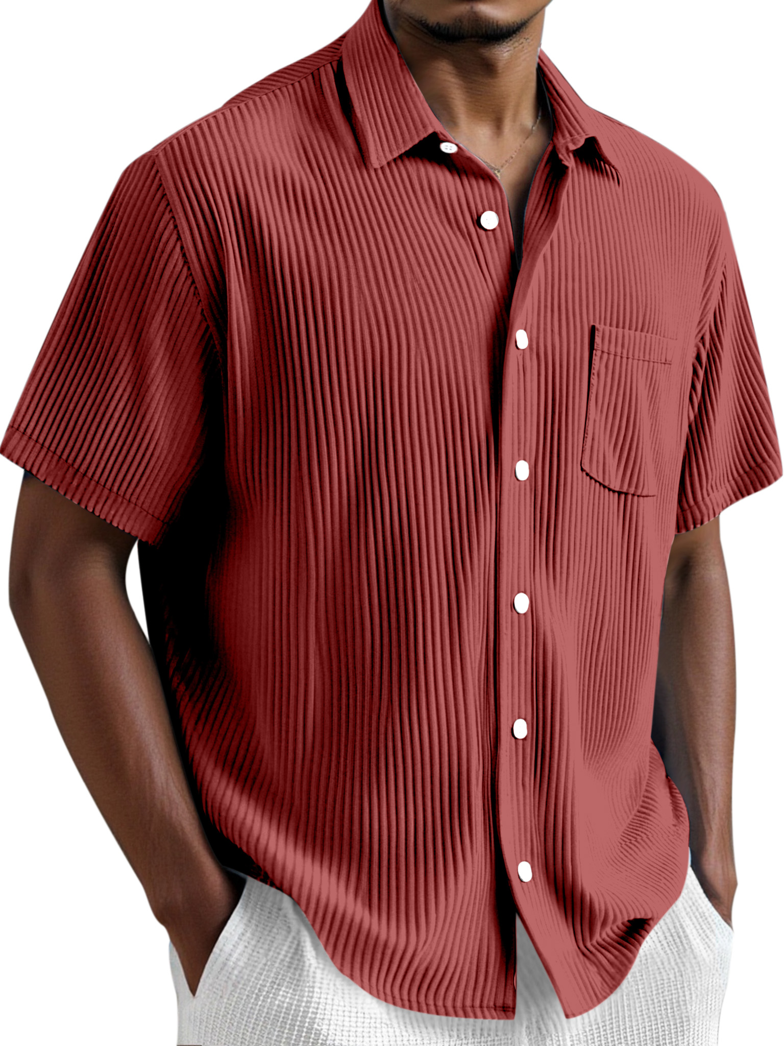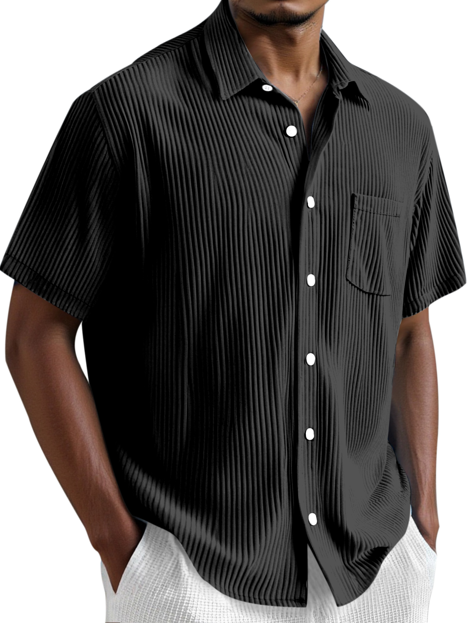 Men's Simple Solid Color Vertical Pit Short Sleeve Shirt